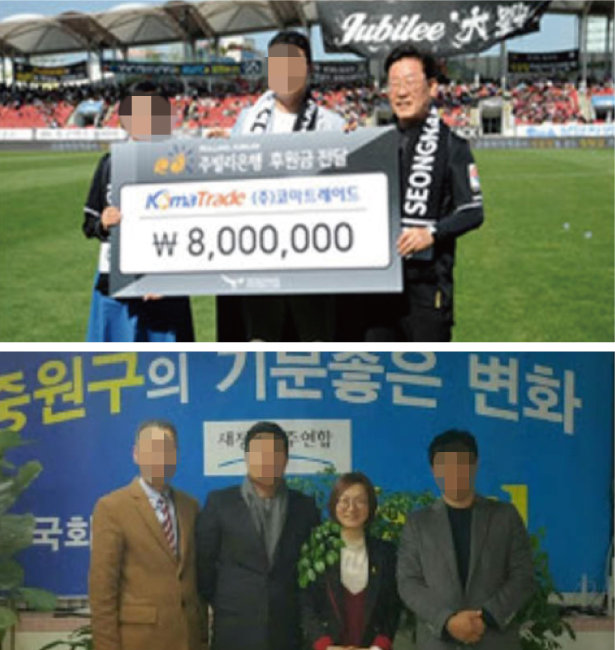 은 시장의 불법정치자금 사건 검찰 공소장에 따르면 "피고인(은 시장)은 제19대 국회의원으로 재직 중이던 2015년 12월 30일경 피고인의 사무실에서 평소 알고 지내던 이○○(경호경비연합회 단장)으로부터 성남시에서 중국 샤오미 한국총판 사업을 하는 주식회사 코마트레이드 대표인 이△△를 '의원님을 지지하는 동생들입니다'라고 소개받았다"고 적혀 있다.